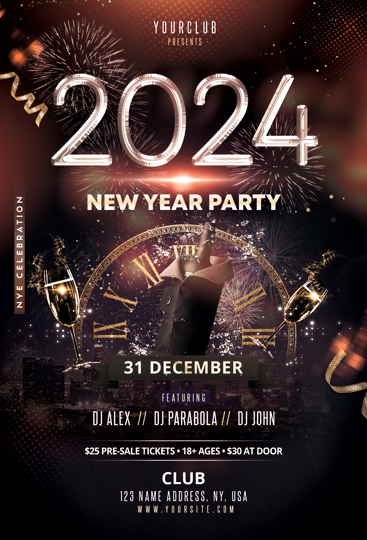 2025 New Years Eve Party Flyer – If you aren’t sure how to celebrate the end of 2023 and the kickoff of 2025, these 55 New Year’s Eve party ideas will close out 2023 and ring in 2025 on a high note—and most will work virtually as . SAN FRANCISCO – San Francisco will celebrate the Year of the Dragon during its annual Chinese New Year Parade, with actress, comedian, and rapper Awkwafina serving as the parade’s grand marshal. .